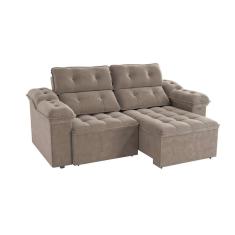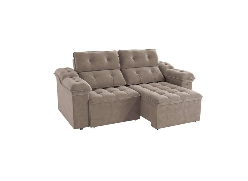 sofá 4 lugares retrátil e reclinável sierra molas veludo cinza claro 265 cm