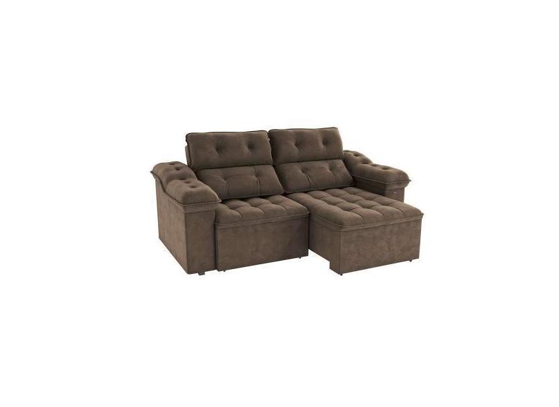 Sofá 4 Lugares Retrátil E Reclinável Sierra Molas Veludo Marrom 265 Cm