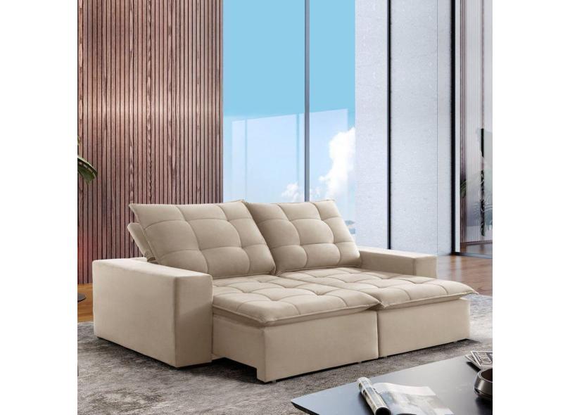 Sofá 4 Lugares Retrátil e Reclinável Super Pilow 200cm Paris Bege Claro
