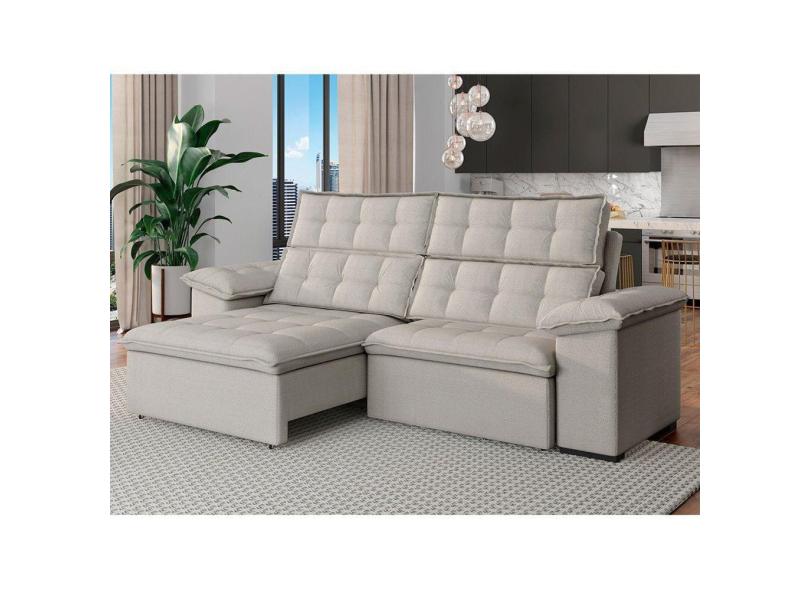 Sofá 4 Lugares Retrátil Reclinável 270cm Denver Bege