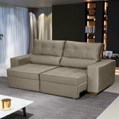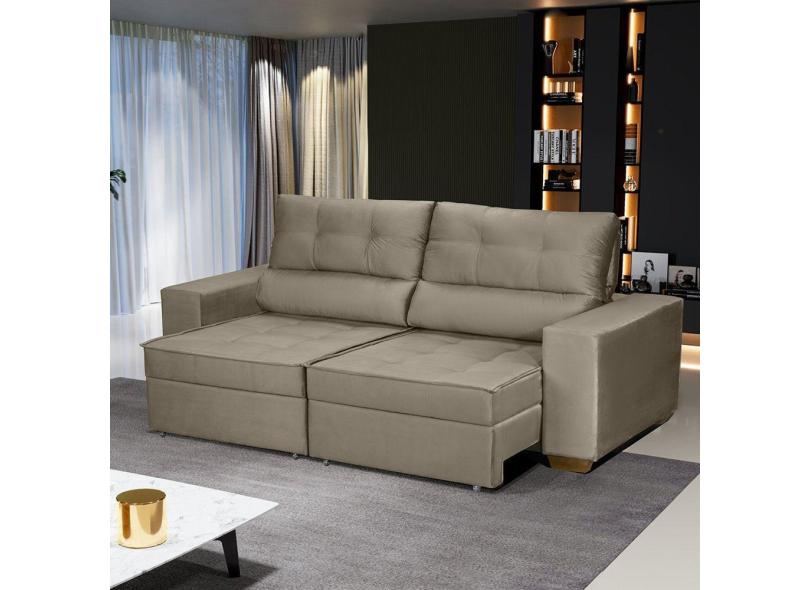 Sofá Baú Retrátil e Reclinável 4 Lugares 220cm Veludo La Plata Yescasa Veludo Bege