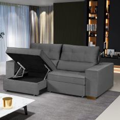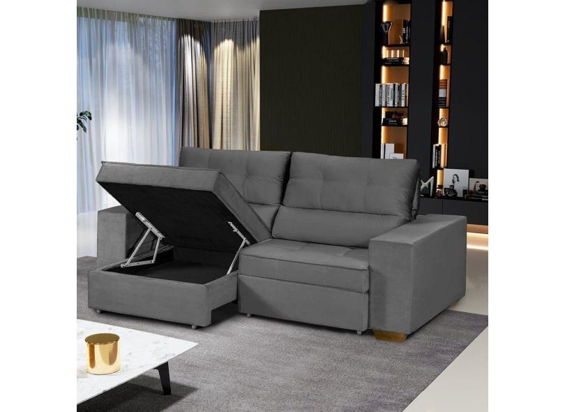 Sofá Baú Retrátil e Reclinável 4 Lugares 220cm Veludo La Plata Yescasa Veludo Cinza
