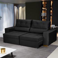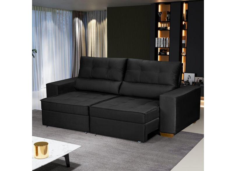 Sofá Baú Retrátil e Reclinável 4 Lugares 220cm Veludo Nobre La Plata Yescasa Preto