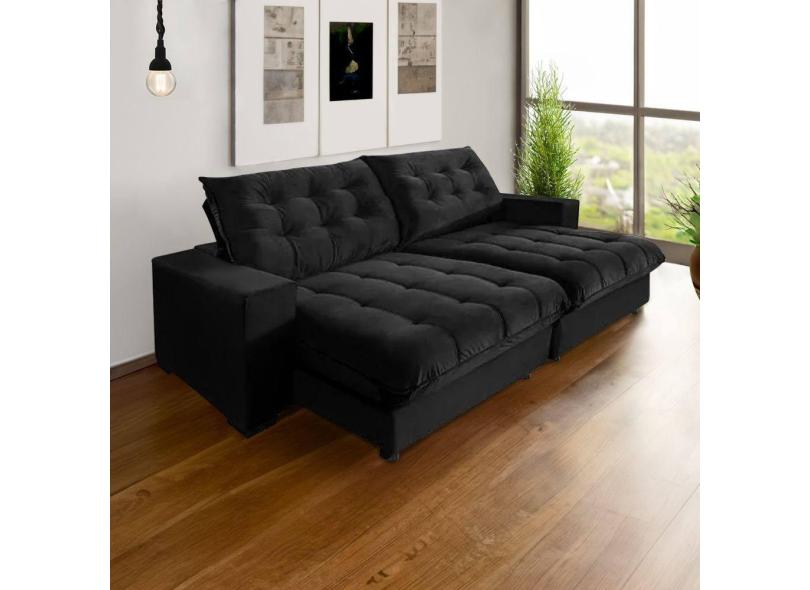 Sofá Califórnia Retrátil E Reclinável 4 Lugares 2,30m Com Molas Ensacadas E Pillow Preto Preto