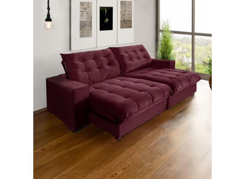Sofá Califórnia Retrátil e Reclinável 4 Lugares 2,30m com Molas Ensacadas e Pillow Vinho