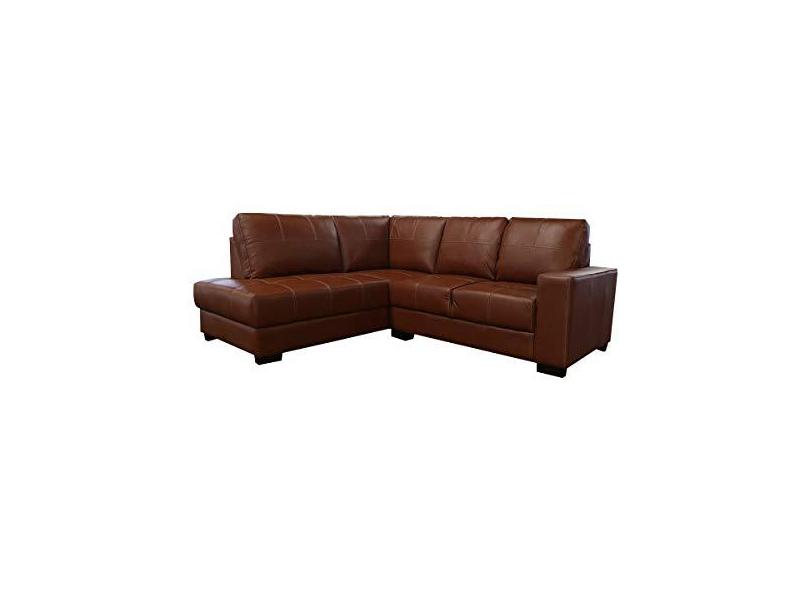 Sofá de Couro Canto Marrocos 2 lugares - Chaise Esquerda - Conhaque com Brilho