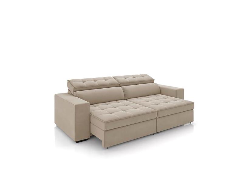 Sofá Decorativo Hugo 2 Lugares 300cm Reclinável e Retrátil Veludo Bege G45 - Gran Belo