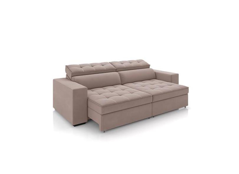 Sofá Decorativo Hugo 2 Lugares 300cm Reclinável e Retrátil Veludo Rosê G45 - Gran Belo