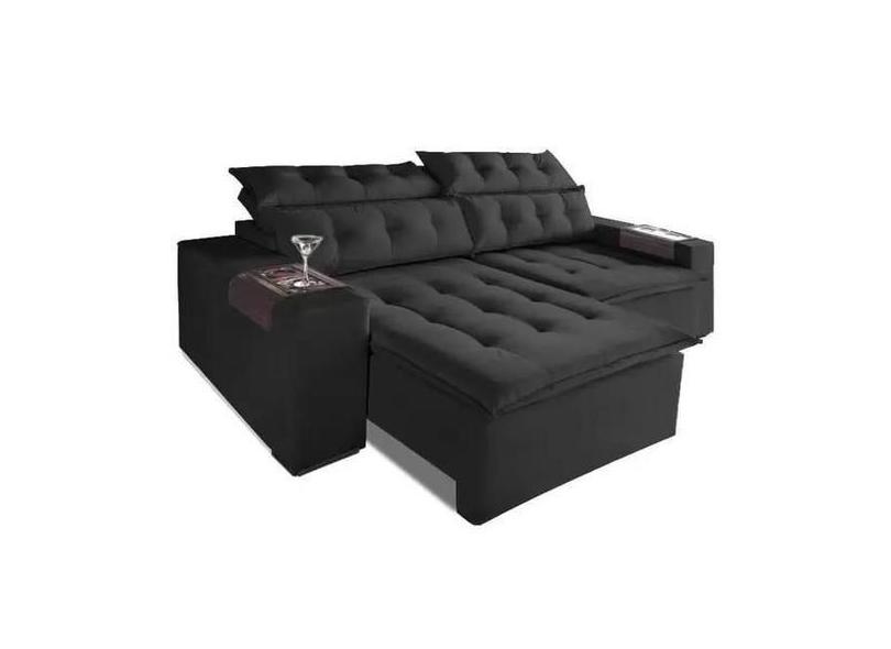 Sofá Retrátil E Reclinável 2,30 Carioca 4 Lugares Preto-Bonequinha Móv