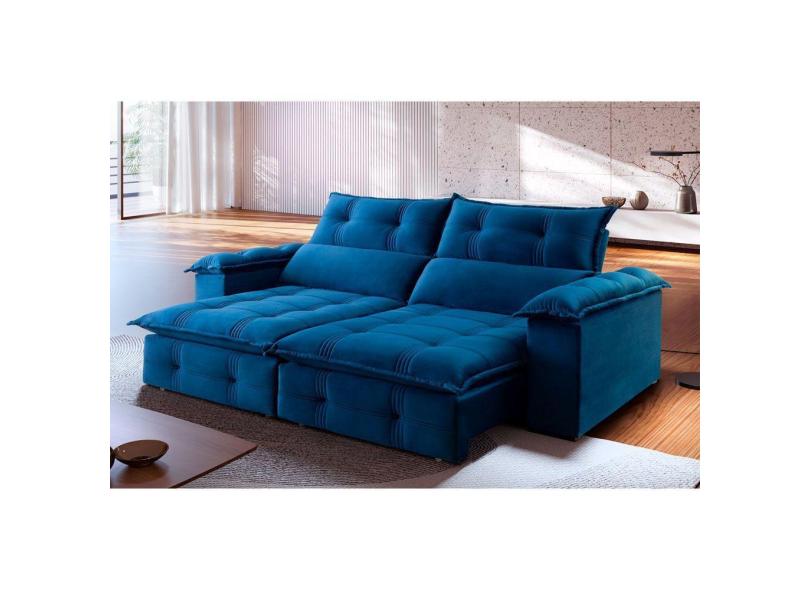 Sofá Retrátil E Reclinável 2,50m 4 Lugares Azul