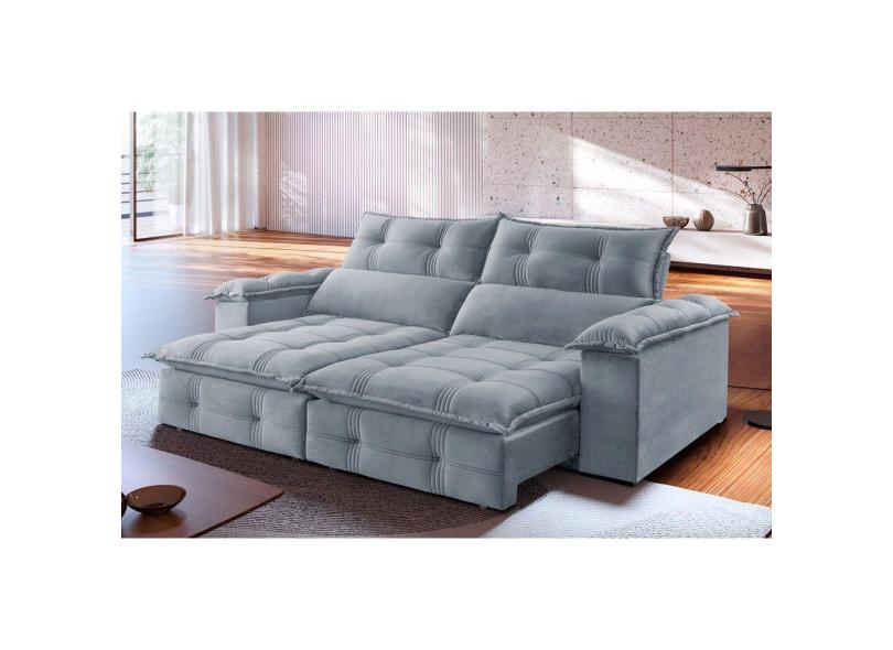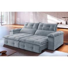 Sofá Retrátil E Reclinável 2,50m 4 Lugares Prata