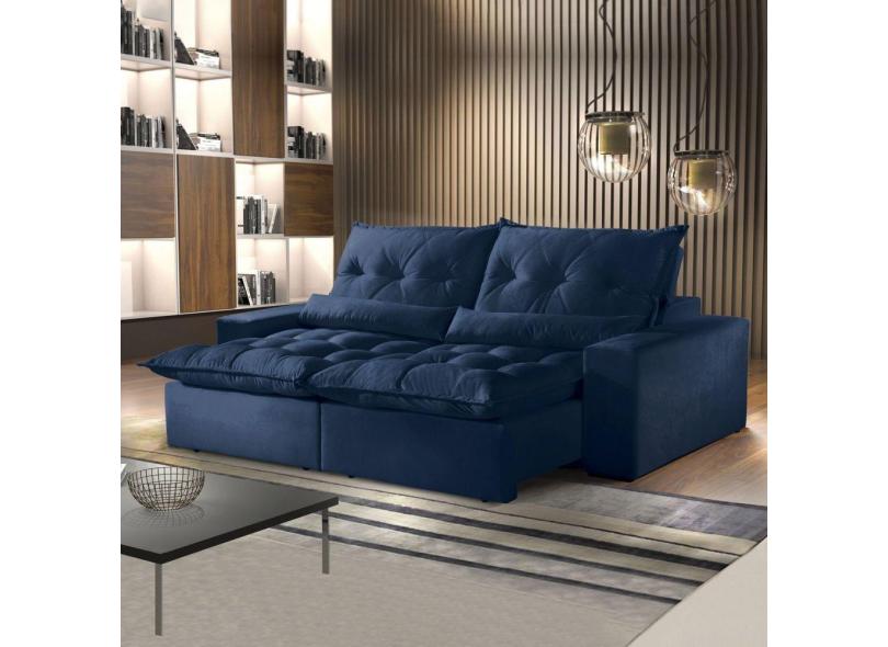 Sofá Retrátil e Reclinável 4 Lugares 250cm Avalon Super Pillow Montano Estofados Veludo Marinho