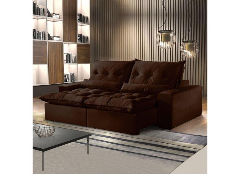 Sofá Retrátil e Reclinável 4 Lugares 250cm Avalon Super Pillow Montano Estofados Veludo Marrom