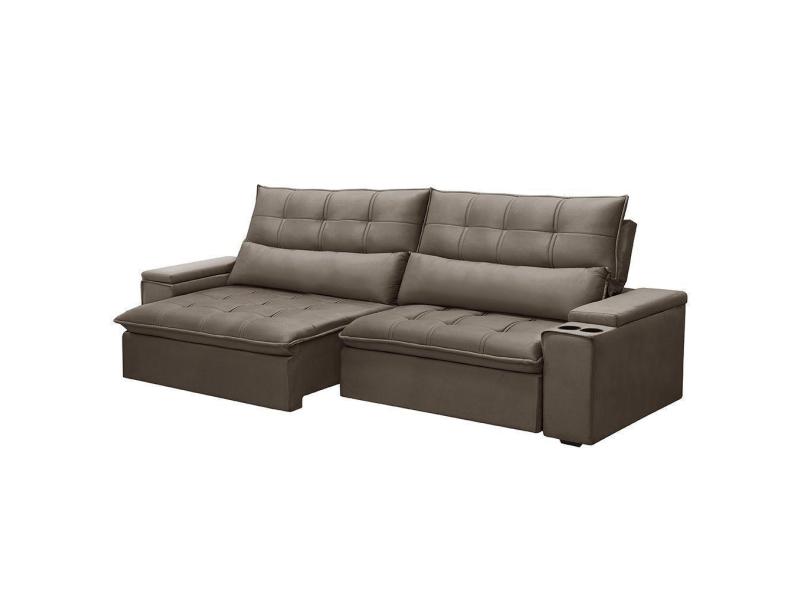 Sofá Retrátil E Reclinável 4 Lugares 250cm Robem Porta Copos No Braço Veludo Castor G22 Gran Belo