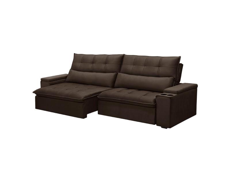 Sofá Retrátil E Reclinável 4 Lugares 250cm Robem Porta Copos No Braço Veludo Marrom G22 - Gran Belo