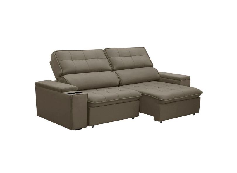 Sofá Retrátil E Reclinável 4 Lugares 250cm Zoho Porta Copos No Braço Veludo Castor G22 - Gran Belo