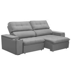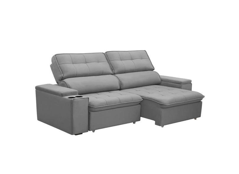 Sofá Retrátil E Reclinável 4 Lugares 250cm Zoho Porta Copos No Braço Veludo Cinza G22 - Gran Belo