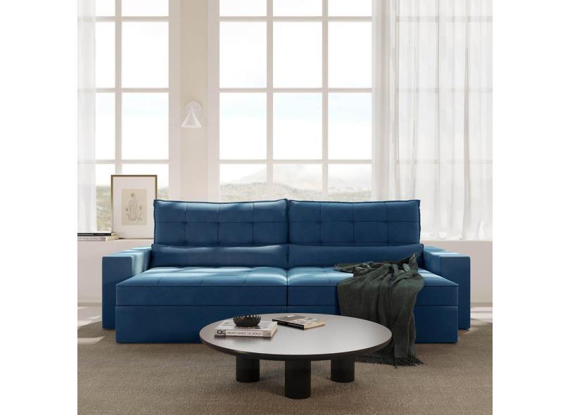 Sofá Retrátil e Reclinável 4 Lugares 300cm Embaúba Extra Cabecasa Madeiramadeira Azul Diamante