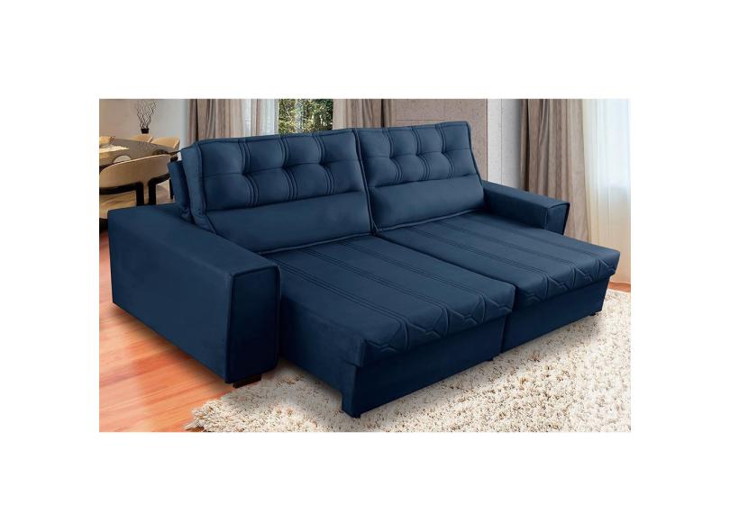 Sofá Retrátil e Reclinável 4 Lugares com Molas 2,70m Camila Suede Azul Adonai Estofados