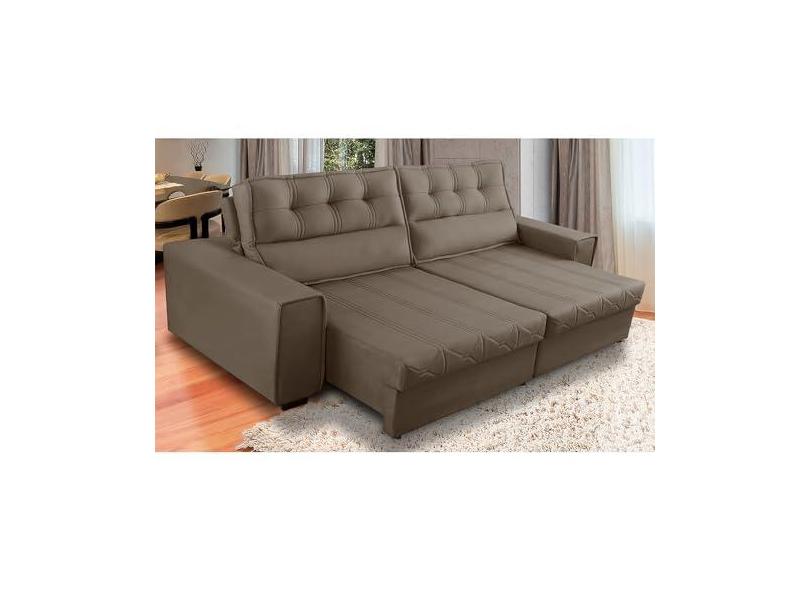 Sofá Retrátil e Reclinável 4 Lugares com Molas 2,70m Camila Suede Cappuccino Adonai Estofados