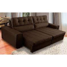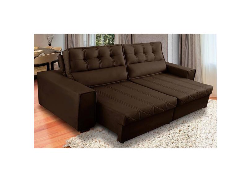 Sofá Retrátil e Reclinável 4 Lugares com Molas 2,70m Camila Suede Marrom Adonai Estofados