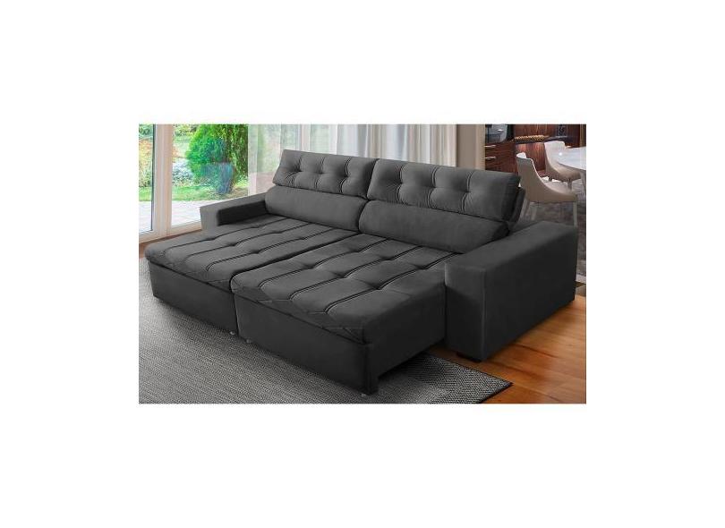 Sofá Retrátil E Reclinável 4 Lugares Com Molas 2,70M Dani Suede Cinza