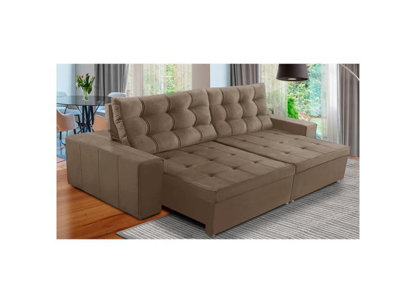 Sofá Retrátil e Reclinável 4 Lugares com Molas 2,70m Duda Suede Cappuccino Adonai Estofados