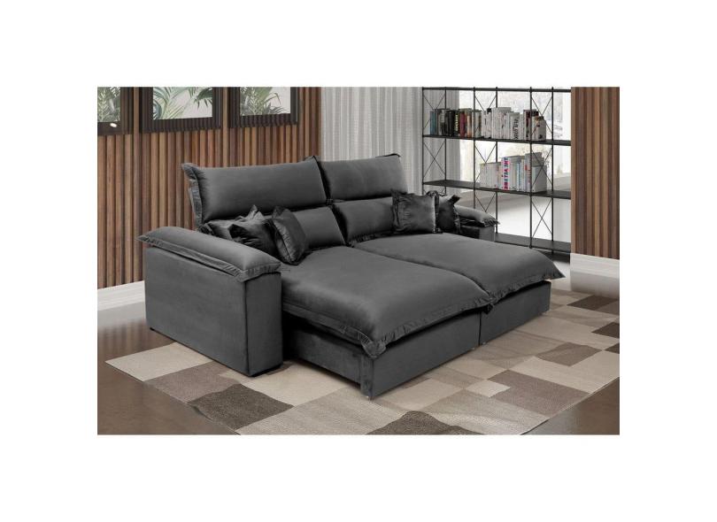 Sofá Retrátil e Reclinável 4 Lugares Lírio Suede Cinza
