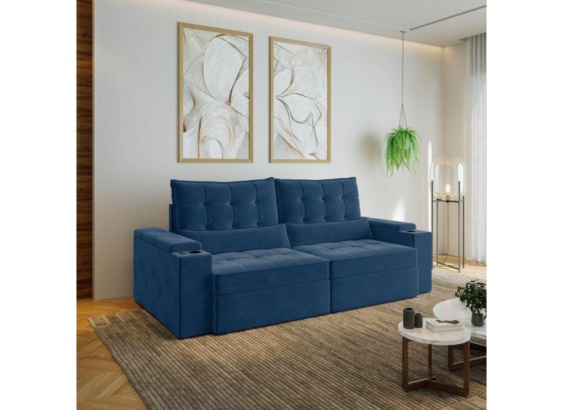 Sofá Retrátil e Reclinável com Porta Copos e Usb 4 Lugares 240cm Embaúba Extra Cabecasa Madeiramadei Azul Diamante