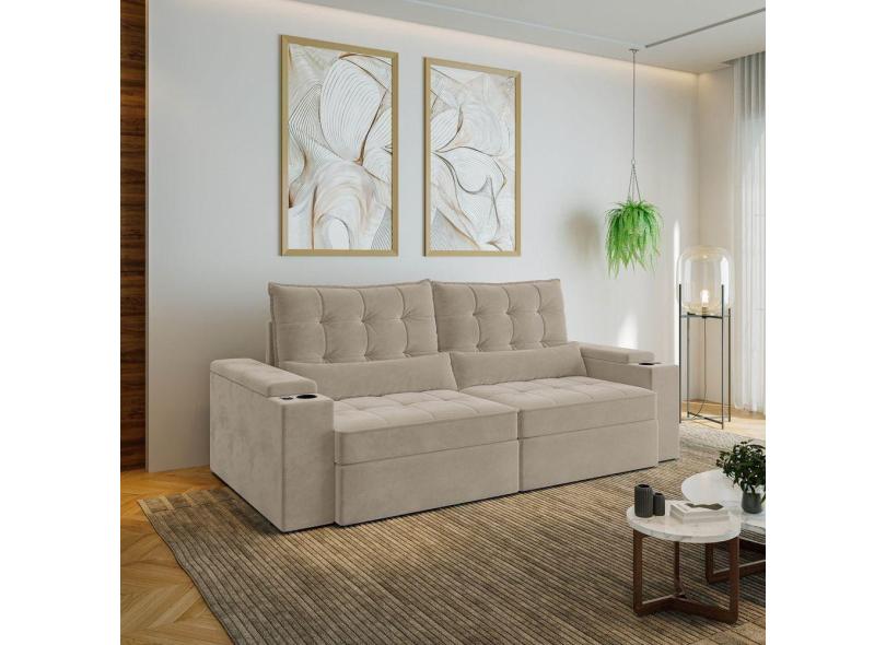 Sofá Retrátil e Reclinável com Porta Copos e Usb 4 Lugares 240cm Embaúba Extra Cabecasa Madeiramadei Bege Fosco