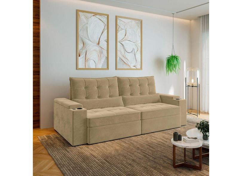 Sofá Retrátil e Reclinável com Porta Copos e Usb 4 Lugares 250cm Embaúba Extra Cabecasa Madeiramadei Palha Diamante