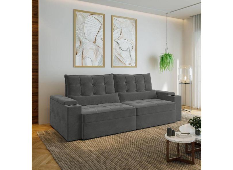 Sofá Retrátil e Reclinável com Porta Copos e Usb 4 Lugares 260cm Embaúba Extra Cabecasa Madeiramadei Grafite Fosco