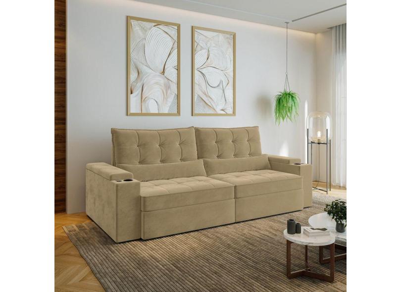 Sofá Retrátil e Reclinável com Porta Copos e Usb 4 Lugares 260cm Embaúba Extra Cabecasa Madeiramadei Palha Diamante