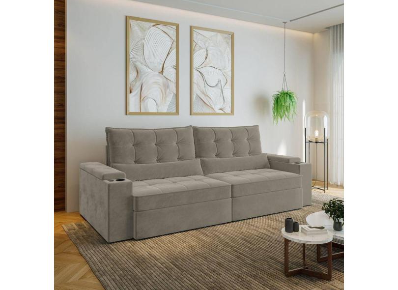 Sofá Retrátil e Reclinável com Porta Copos e Usb 4 Lugares 270cm Embaúba Extra Cabecasa Madeiramadei Cinza Claro Fosco