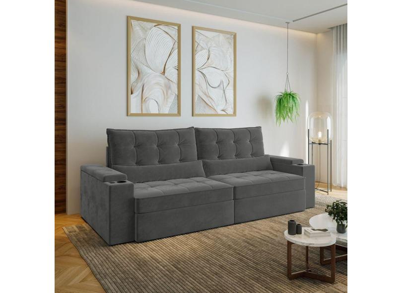 Sofá Retrátil e Reclinável com Porta Copos e Usb 4 Lugares 270cm Embaúba Extra Cabecasa Madeiramadei Grafite Fosco