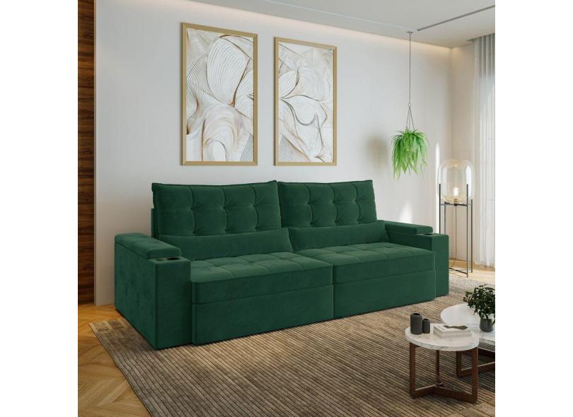 Sofá Retrátil e Reclinável com Porta Copos e Usb 4 Lugares 270cm Embaúba Extra Cabecasa Madeiramadei Verde Diamante