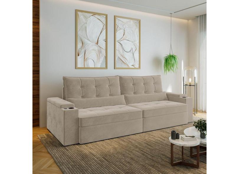 Sofá Retrátil e Reclinável com Porta Copos e Usb 4 Lugares 290cm Embaúba Extra Cabecasa Madeiramadei Bege Fosco
