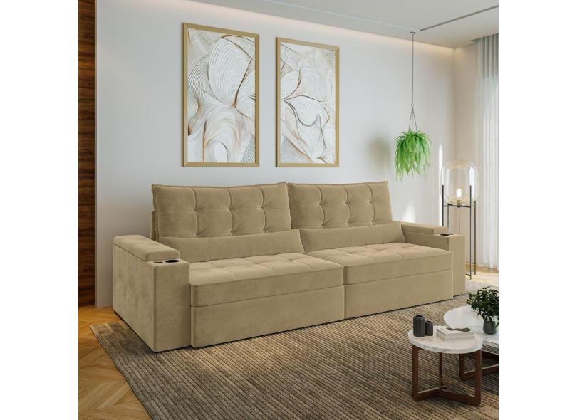 Sofá Retrátil e Reclinável com Porta Copos e Usb 4 Lugares 290cm Embaúba Extra Cabecasa Madeiramadei Palha Diamante