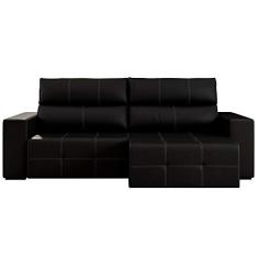 Sofá Retrátil Reclinável 4 Lugares Sala de Estar 284cm Russo Couro Preto - Gran Belo