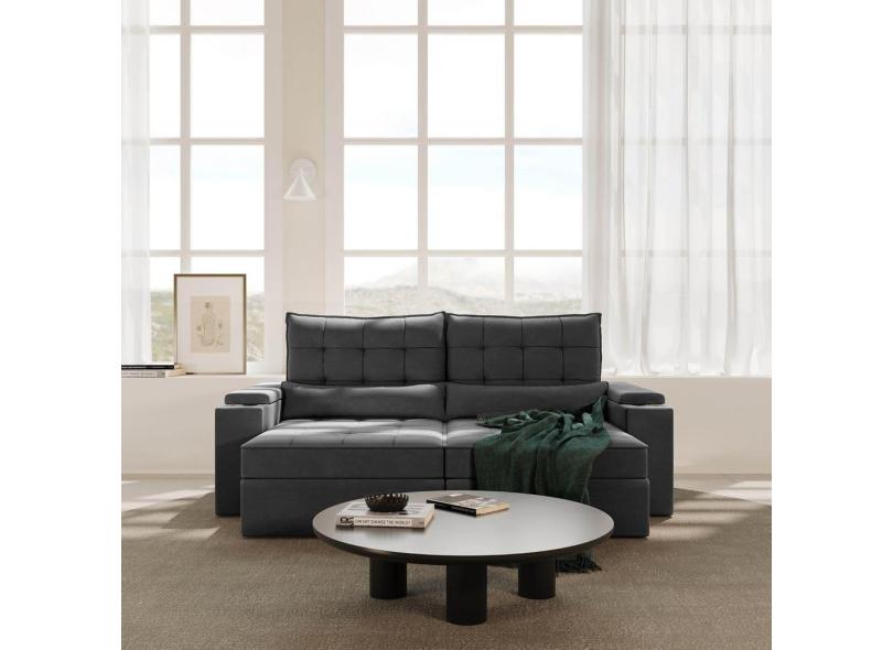 Sofá Retrátil Reclinável com Porta Copos e Usb 4 Lugares 240cm Embaúba Extra Cabecasa Madeiramadeira Cinza Diamante