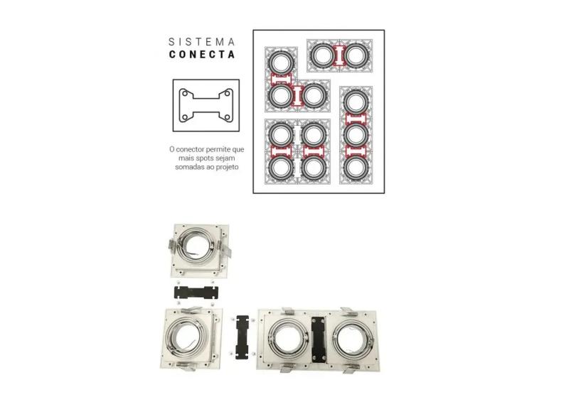 Spot Quadruplo Embutir Quadrado Recuado Para Mini Dicróica Gu10 Mr11
