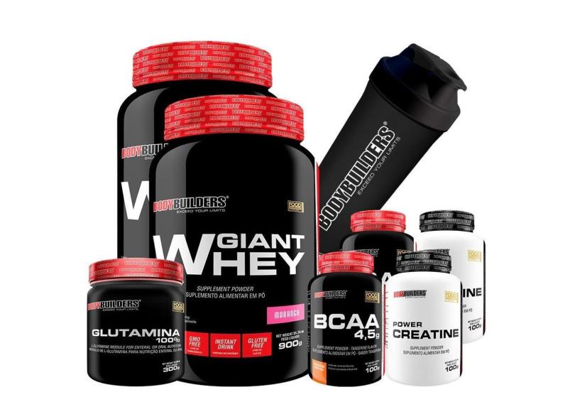 KIT 2x Giant Whey Protein 900g + 2x BCAA 100g + 2x Creatina 100g + Glutamina 300g + Shaker - BB-Unissex
