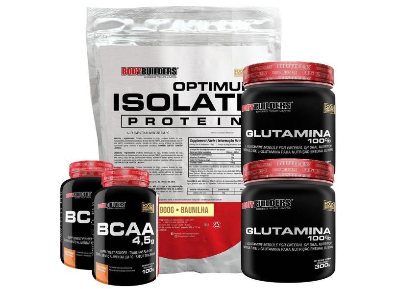 Kit Optimum Isolate Whey Protein 900g + 2x Bcaa 100g + 2x Glutamina 300g - Bodybuilders-Unissex