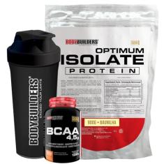 Kit Optimum Isolate Whey Protein 900g + BCAA 100g + Coqueteleira - Bodybuilders Sabor Baunilha