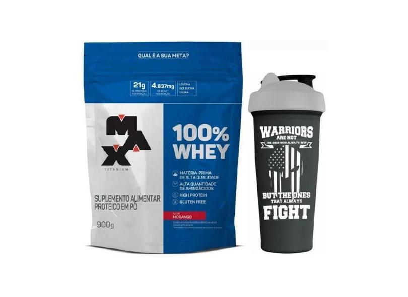 Whey 100% Pure Concentrado 900G Refil Morango + Coqueteleira - Max Tit
