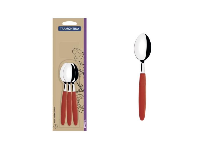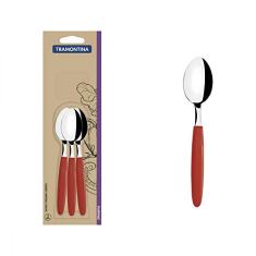Conjunto de Colheres para Chá Tramontina Ipanema com Lâminas em Aço Inox e Cabos de Polipropileno Vermelho 3 Peças