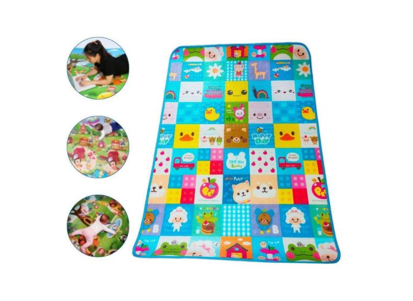Tapete Infantil Grande Educativo Para Bebê Baby Style Gato Azul 120 x 180cm