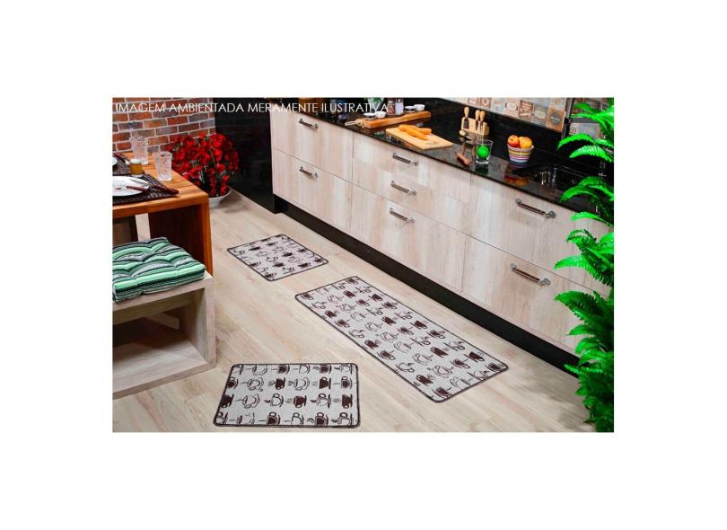Jogo de Tapete Cozinha 3 Peças Pratik Cafe Oasis