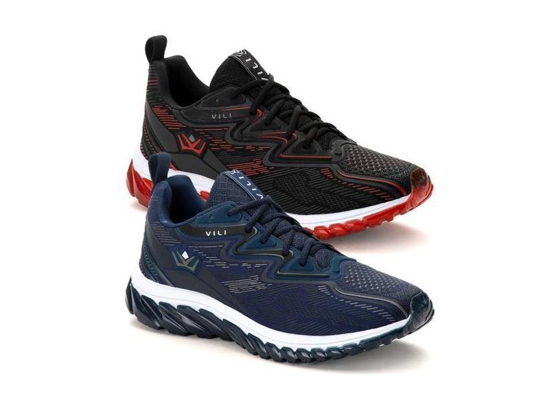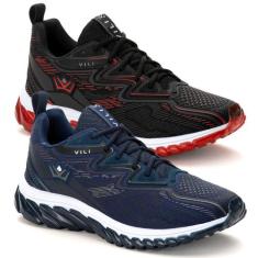 2 Pares Tênis Esportivo Masculino Olimp para Academia Vili, Marinho, P