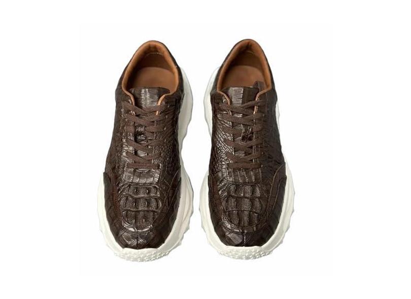 Authentic Exotic Crocodile Skin Brown Color Tênis masculino casual genuíno couro jacaré genuíno masculino macio cadarço sapatilha de caminhada, Marrom, 39